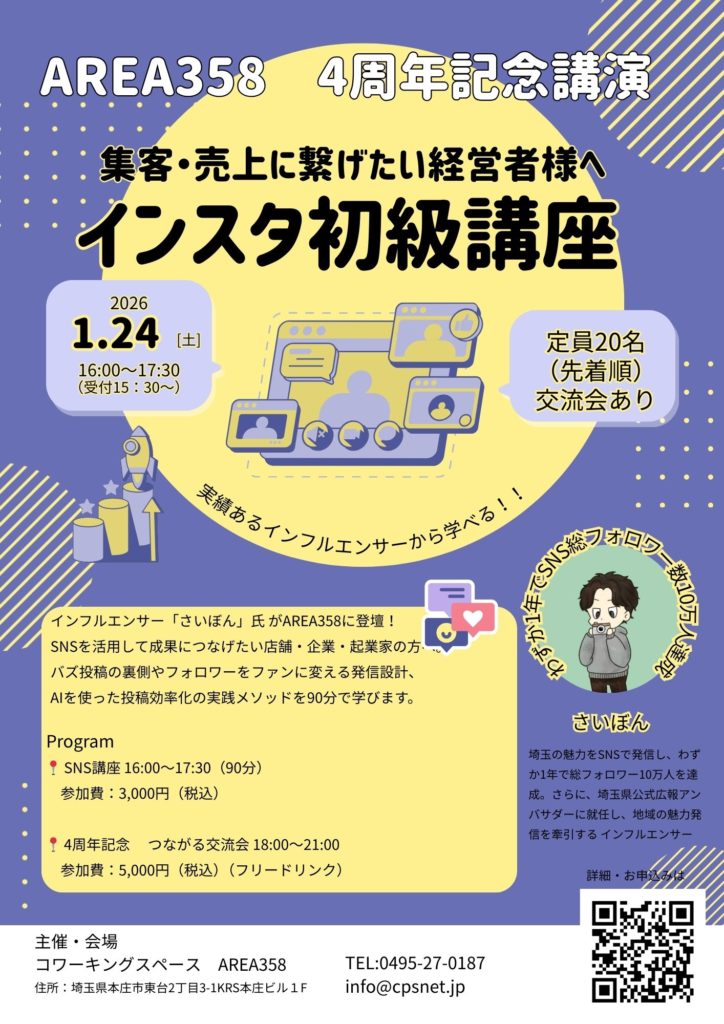 おかげさまで、AREA358は 2026年1月に 4周年 を迎えます。